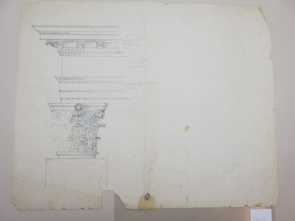 Tekening in potlood, pen en inkt, voorstellende pila...