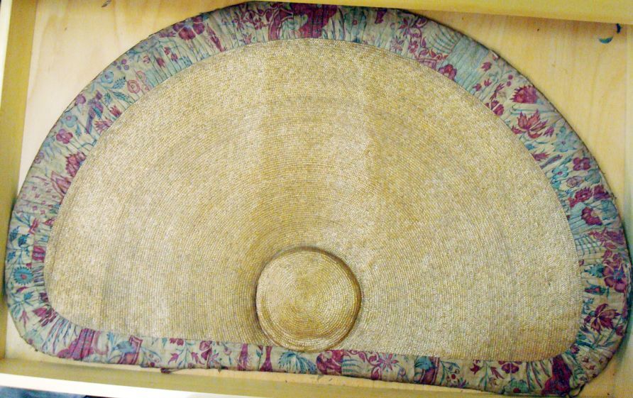 Zonhoed met sitsen voering beschilderd met dicht pat...