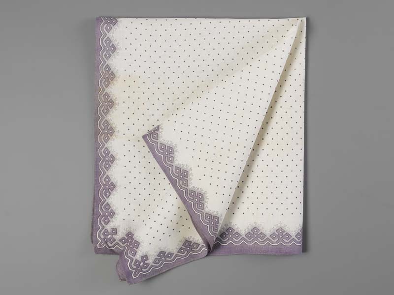 Een pakdoek van bedrukte katoen paars-wit gestreept