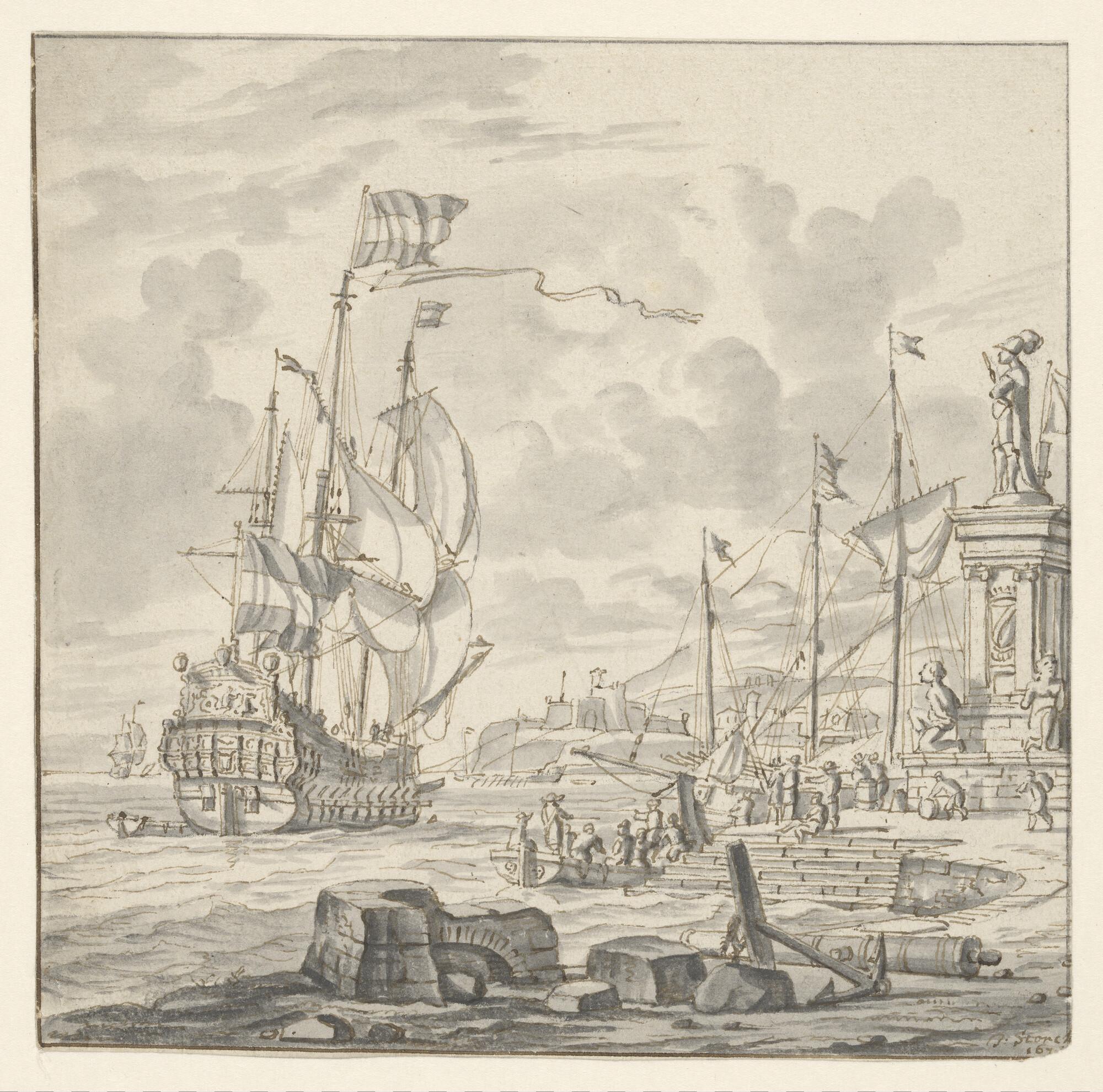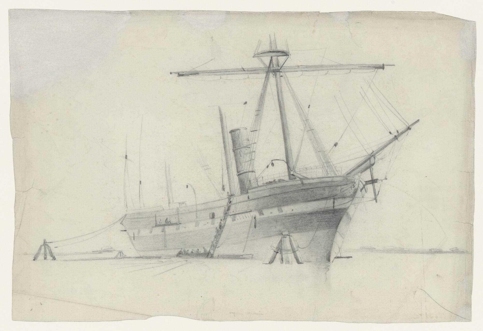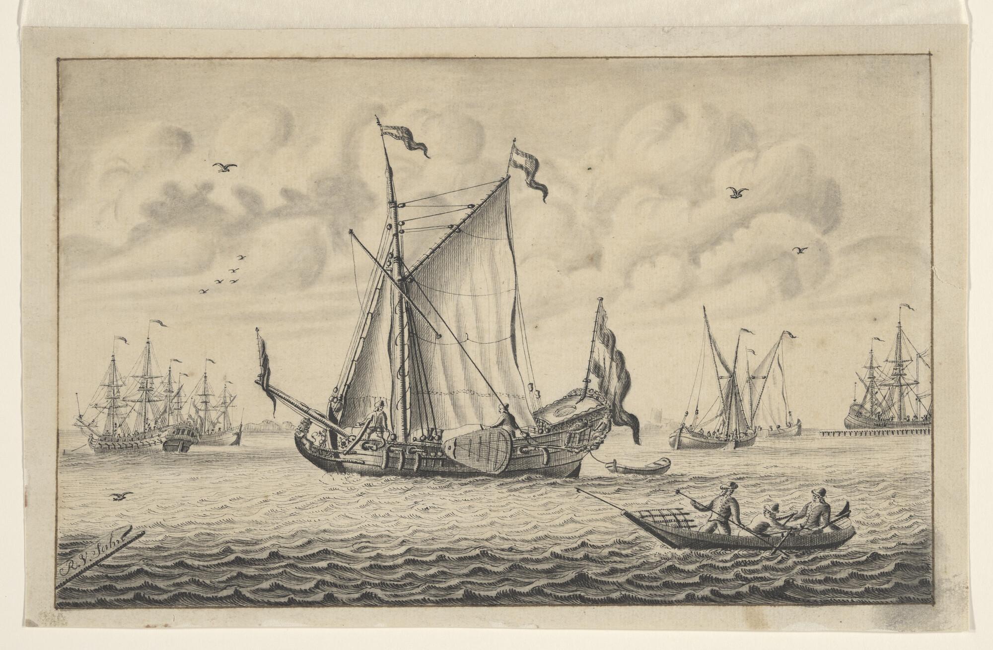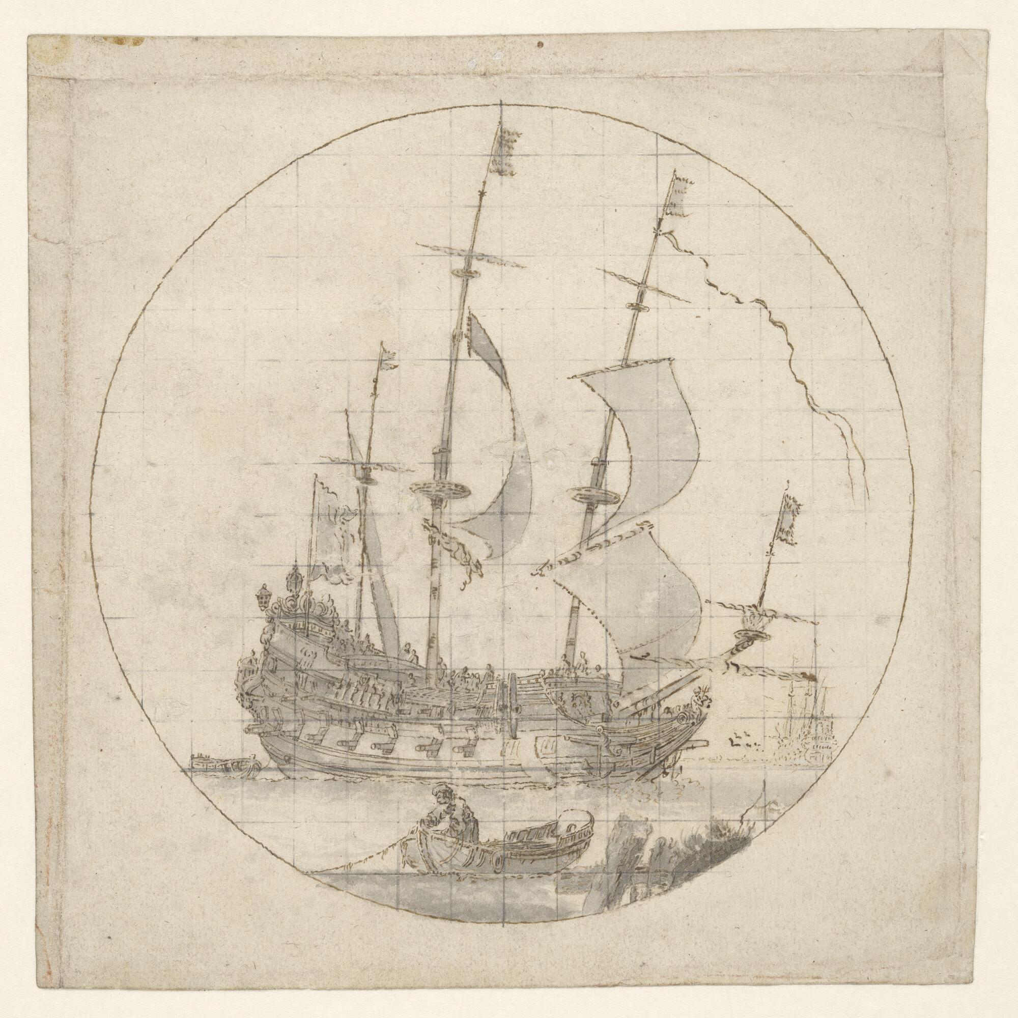 Een van een rede onder zeil gaand linieschip (oorlog...