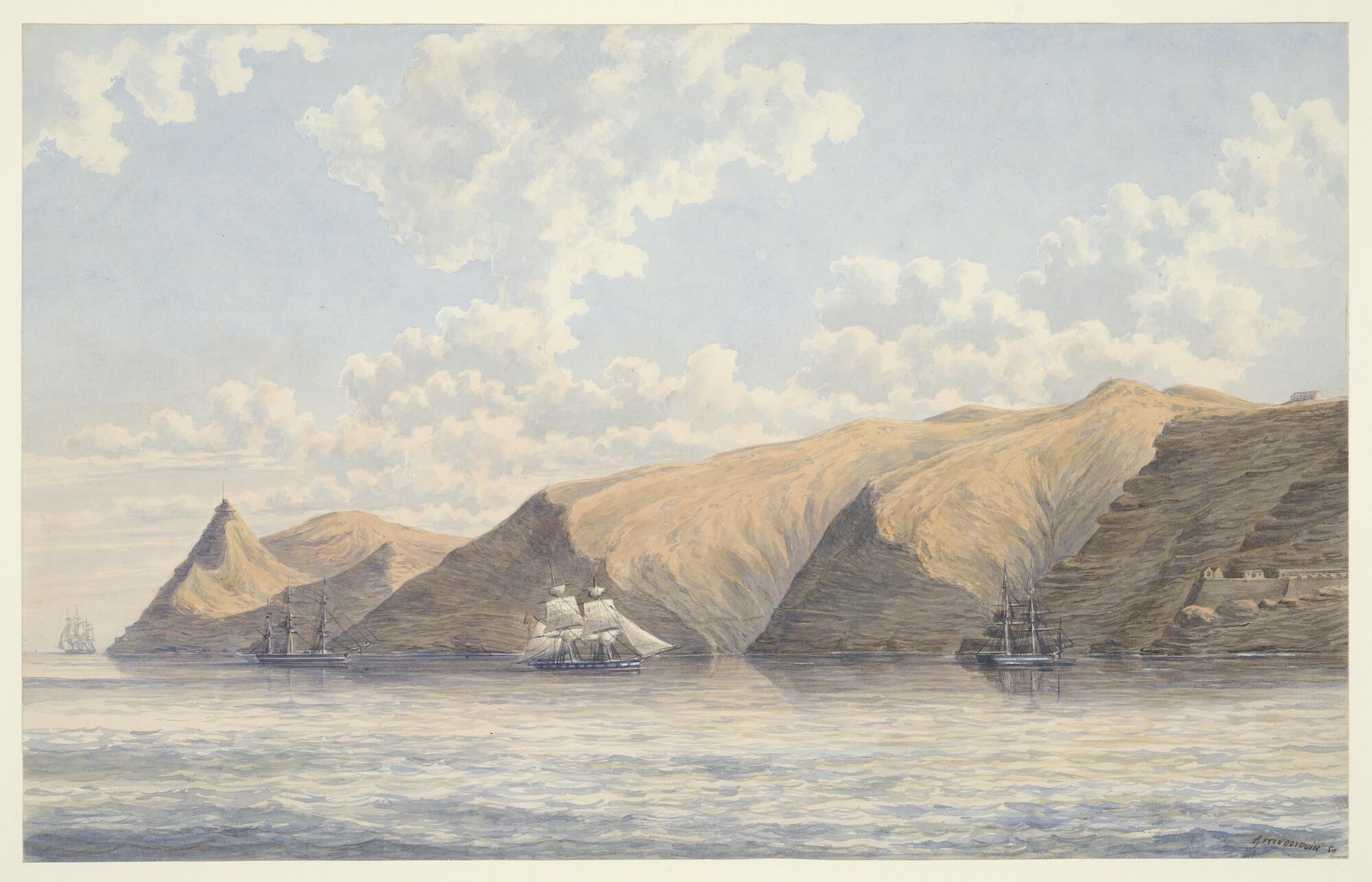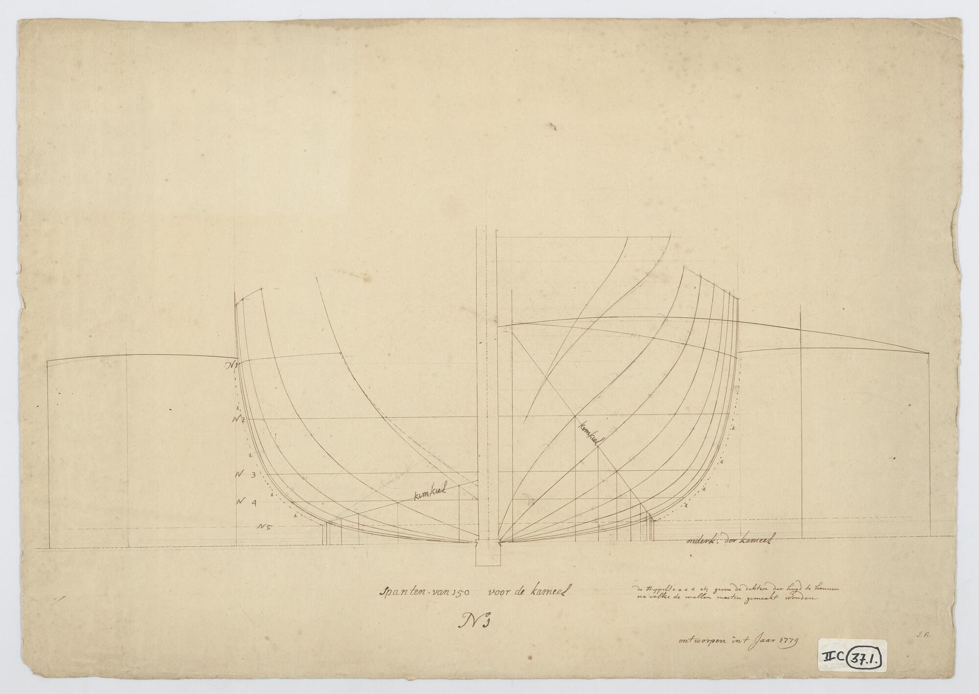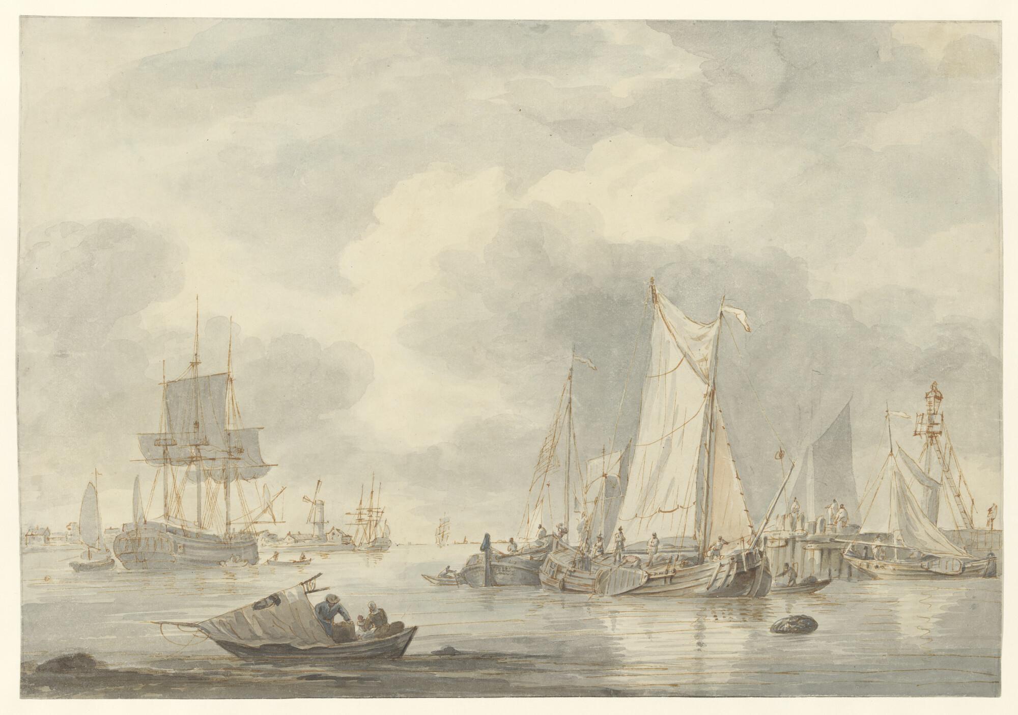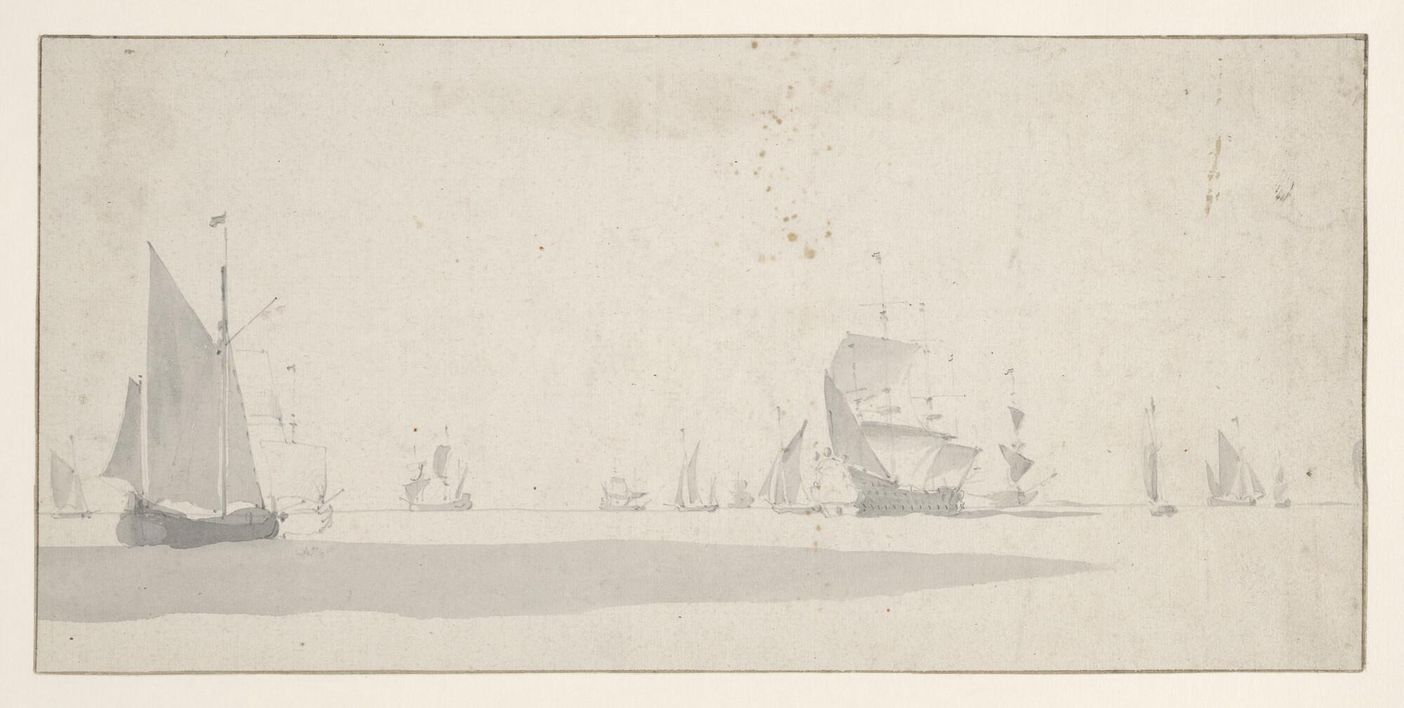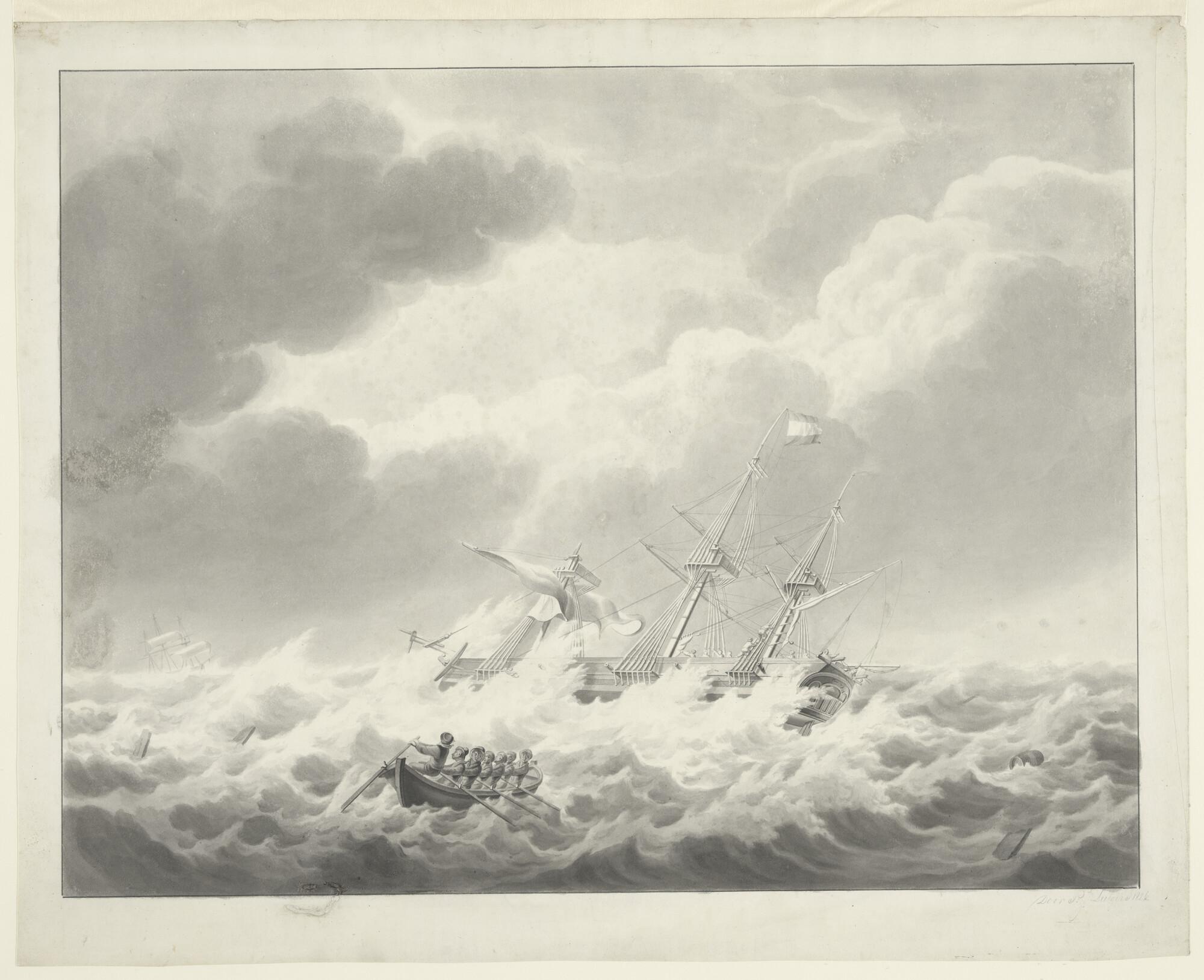Een van een rede onder zeil gaand linieschip (oorlog...