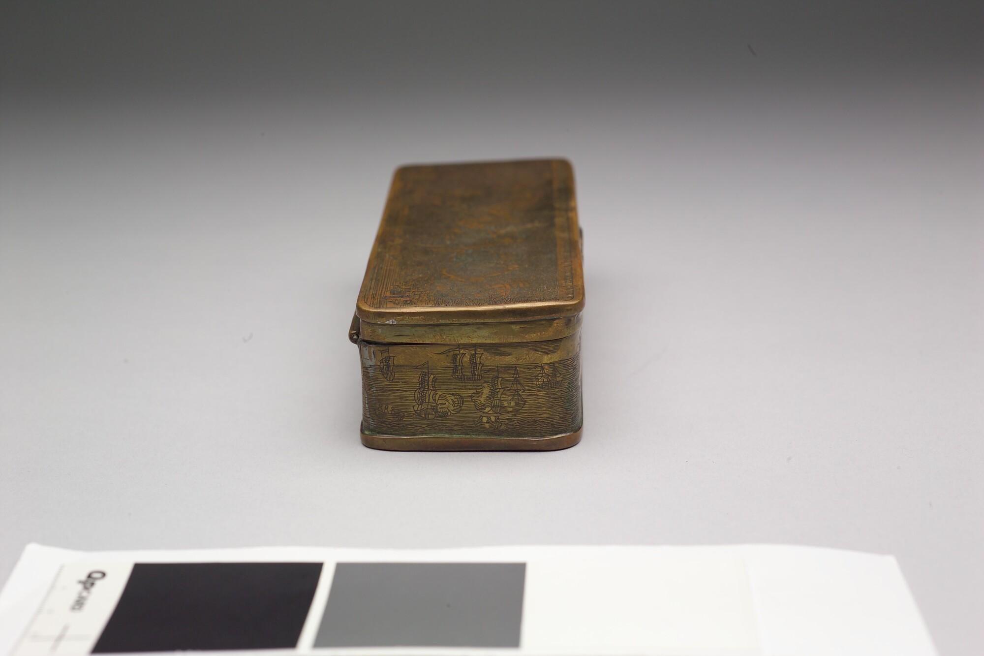 Tabaksdoos met op deksel een voorstelling van de Sla...