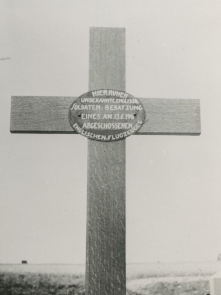 Foto van grafkruis met bord: "Hier ruhen unbekannte ...