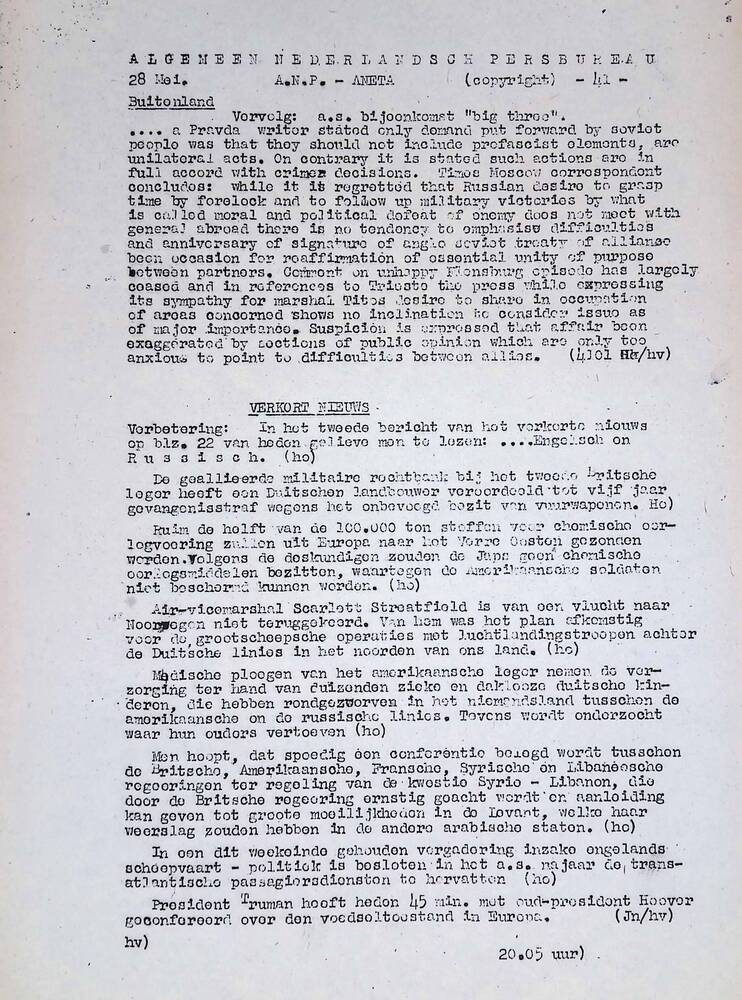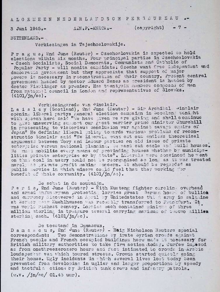 Algemeen Nederlandsch Persbureau, mededelingen, 3 ju...
