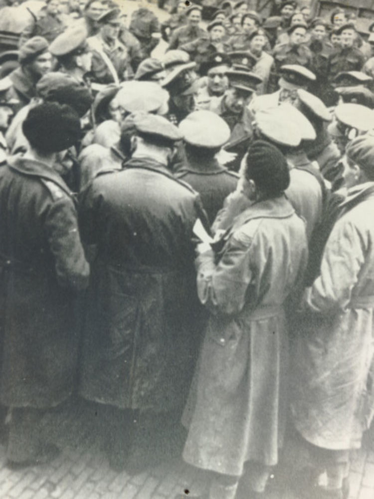 Foto Prins Bernhard temidden van officieren