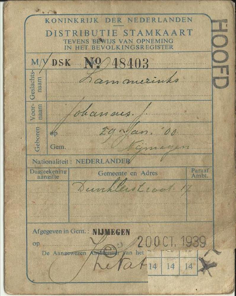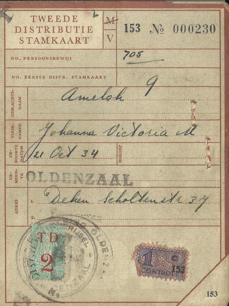 Distributiestamkaart ( tevens bewijs van opneming in...