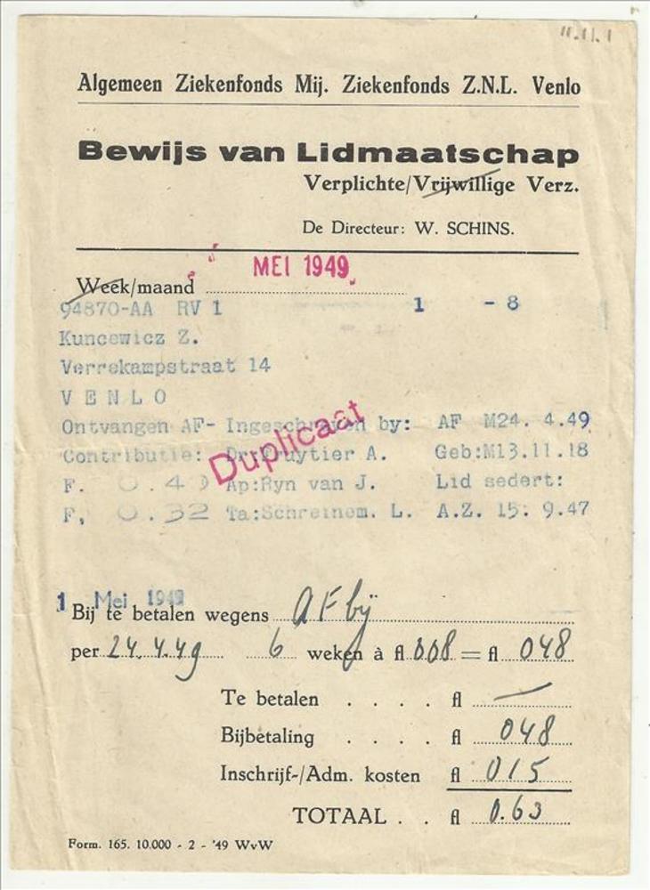 Bewijs van Lidmaatschap Verplichte Verz. Ziekenfonds...