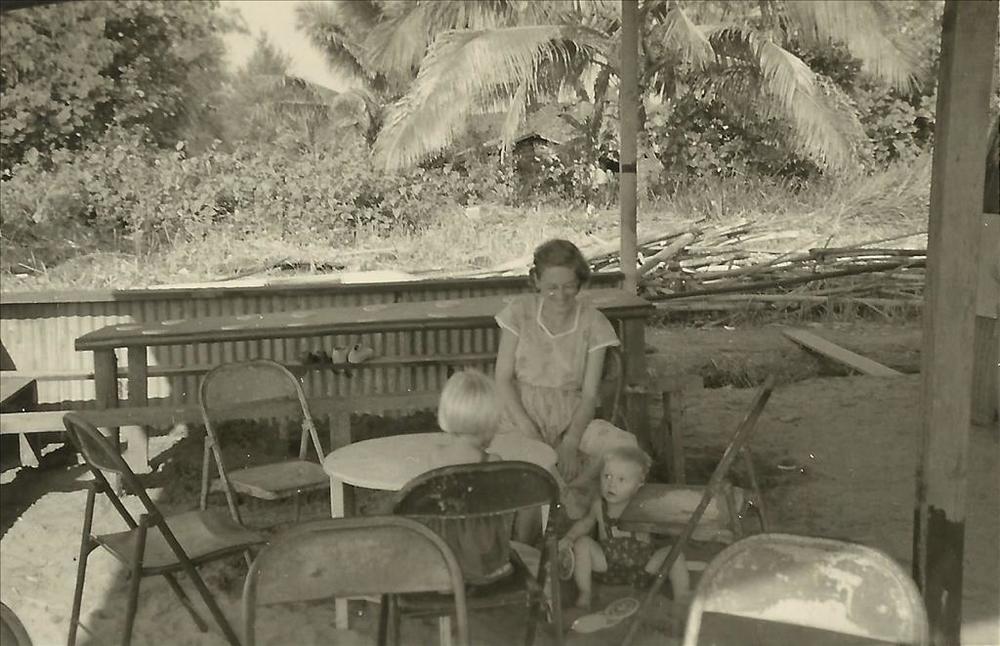 Nieuw-Guinea; vrouw (met bril) en twee kinderen op v...