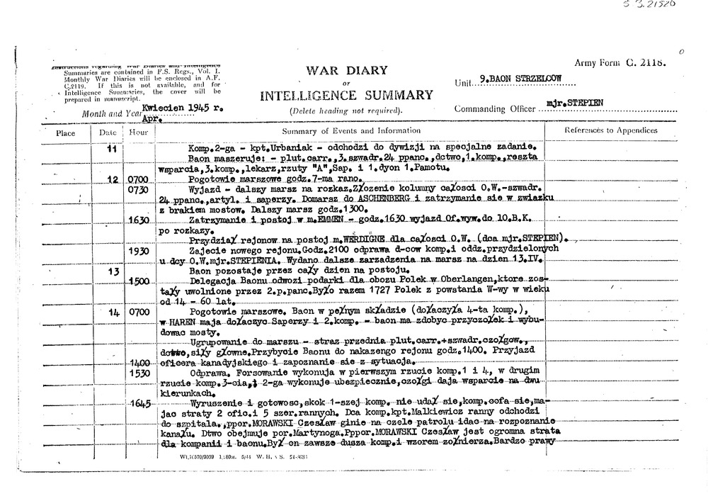Dagrapporten Poolse 9e Bataljon Jagers