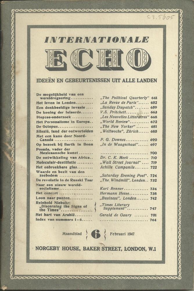 "Internationale Echo maandblad nr 6. Februari 1947"