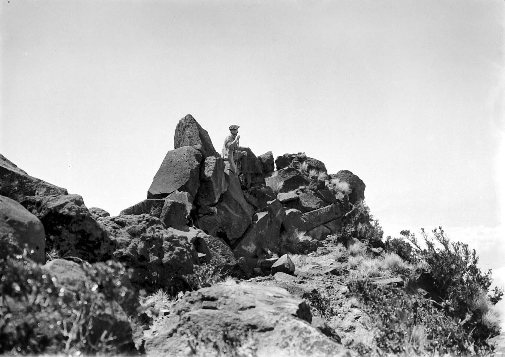 Een militair staat op de rotsen van de top van de Ar...