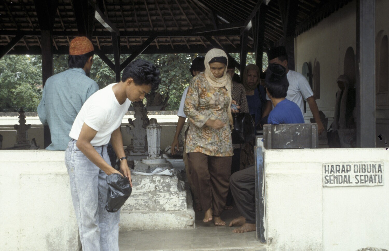 Bezoekers van de moskee en de begraafplaats