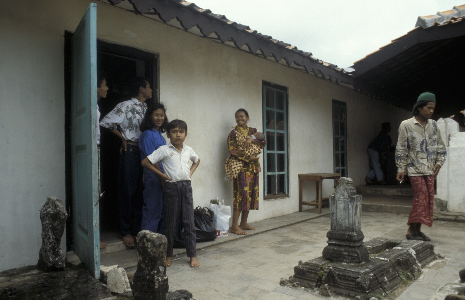 People visiting the mosque and it's cemetery