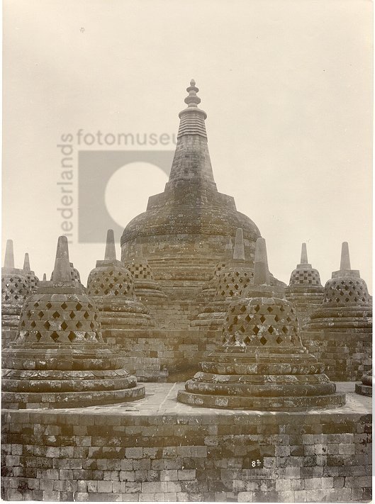 De Borobudur ten tijde van de ontgraving van de bedo...