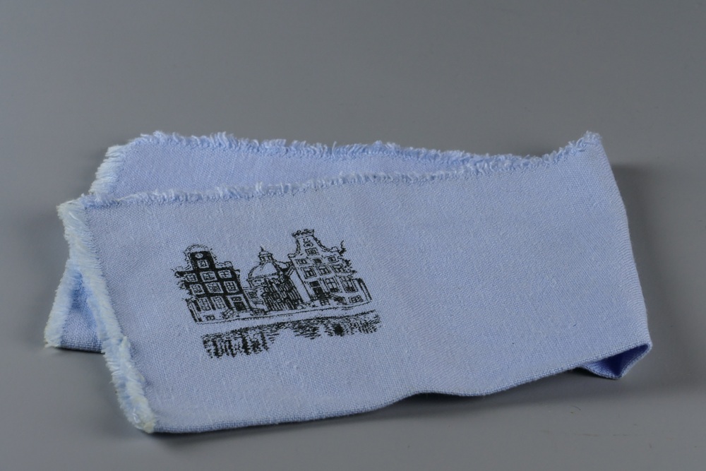 servet van licht blauwe katoen bedrukt met voorstell...
