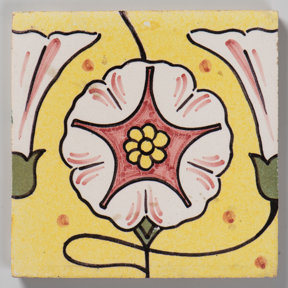 Tableautegels van aardewerk met tinglazuur met een r...
