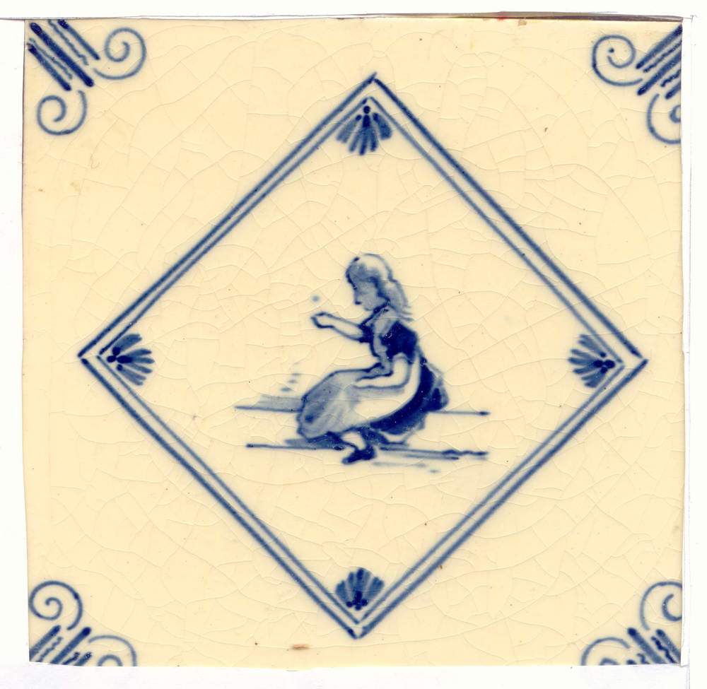 tegel van keramiek in onderglazuur, voorstellende: k...