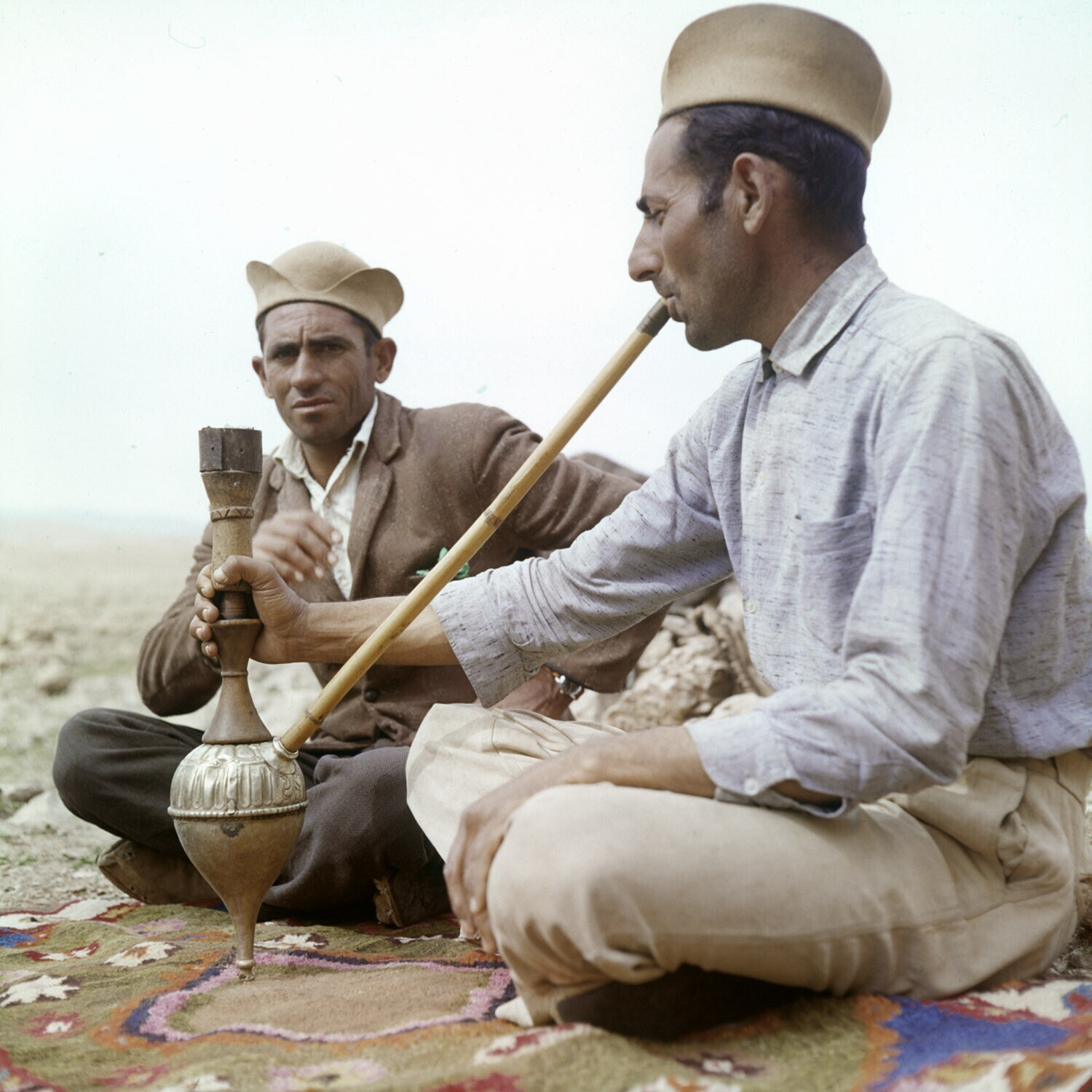 Sen nomade met een waterpijp zonder voetstuk, dus de...