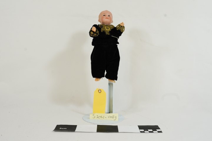 Jongenspop met zwart fluwelen pak