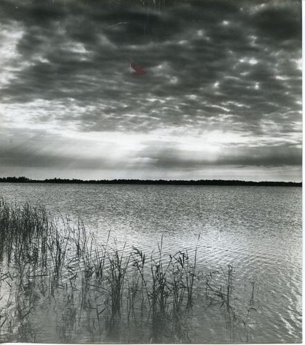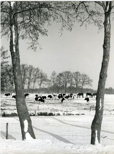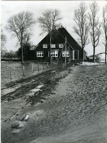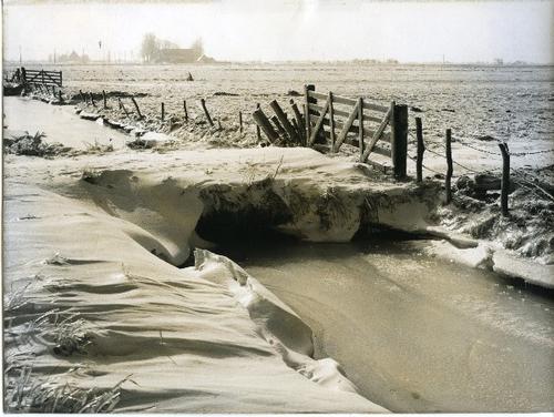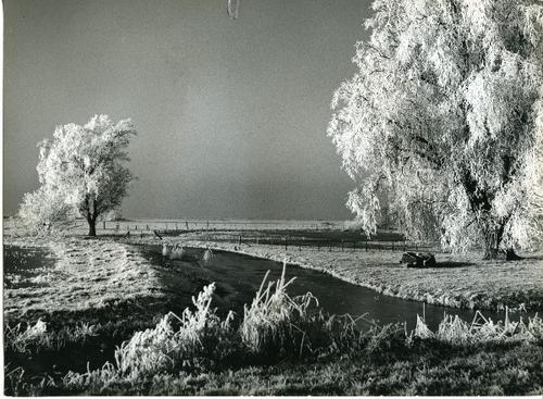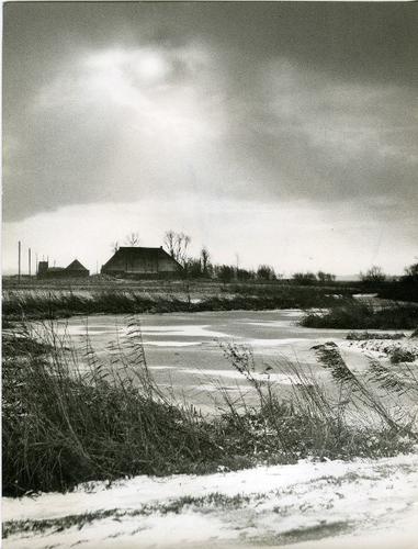 Foto in zwart-wit van ondergelopen land door J.D. de...