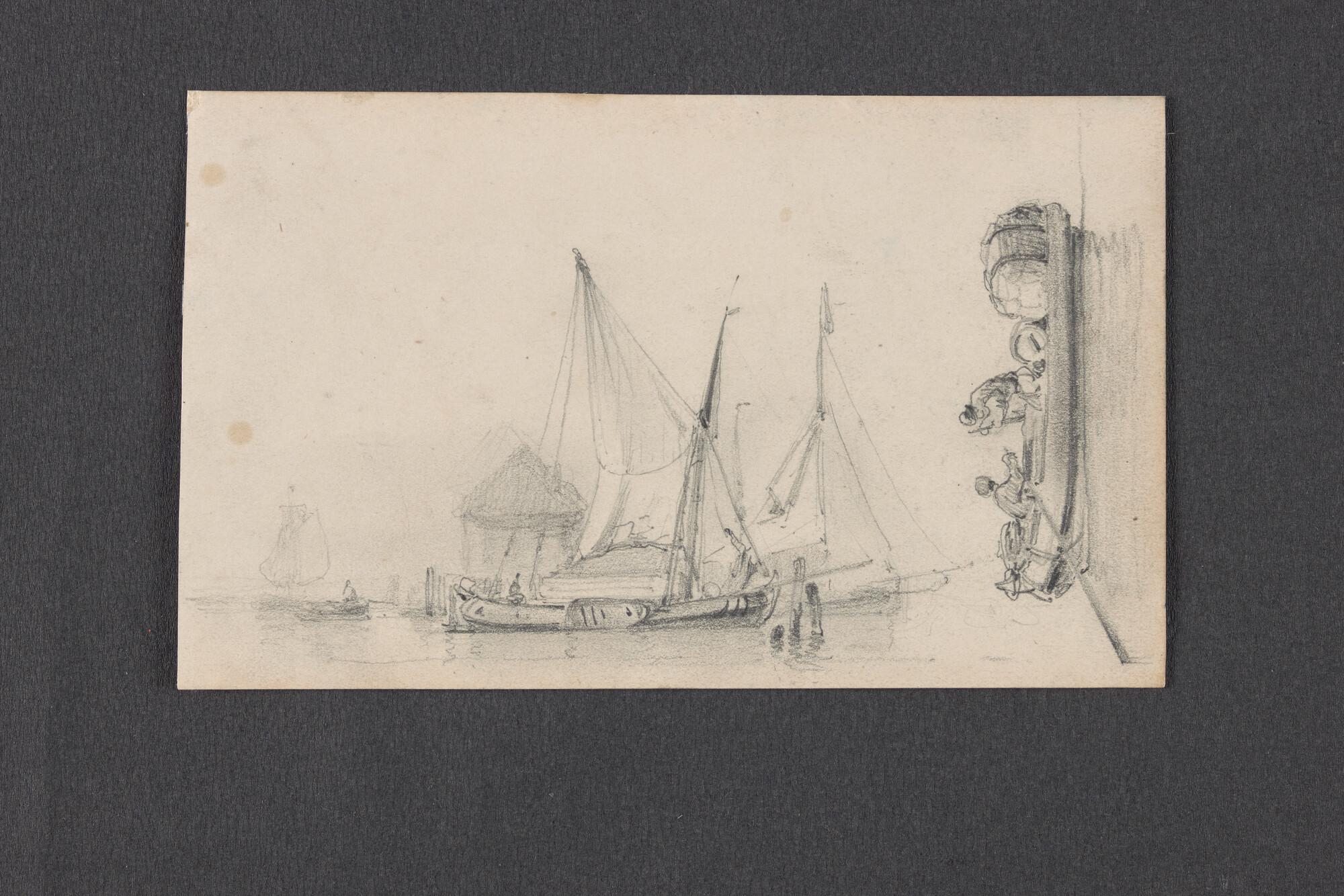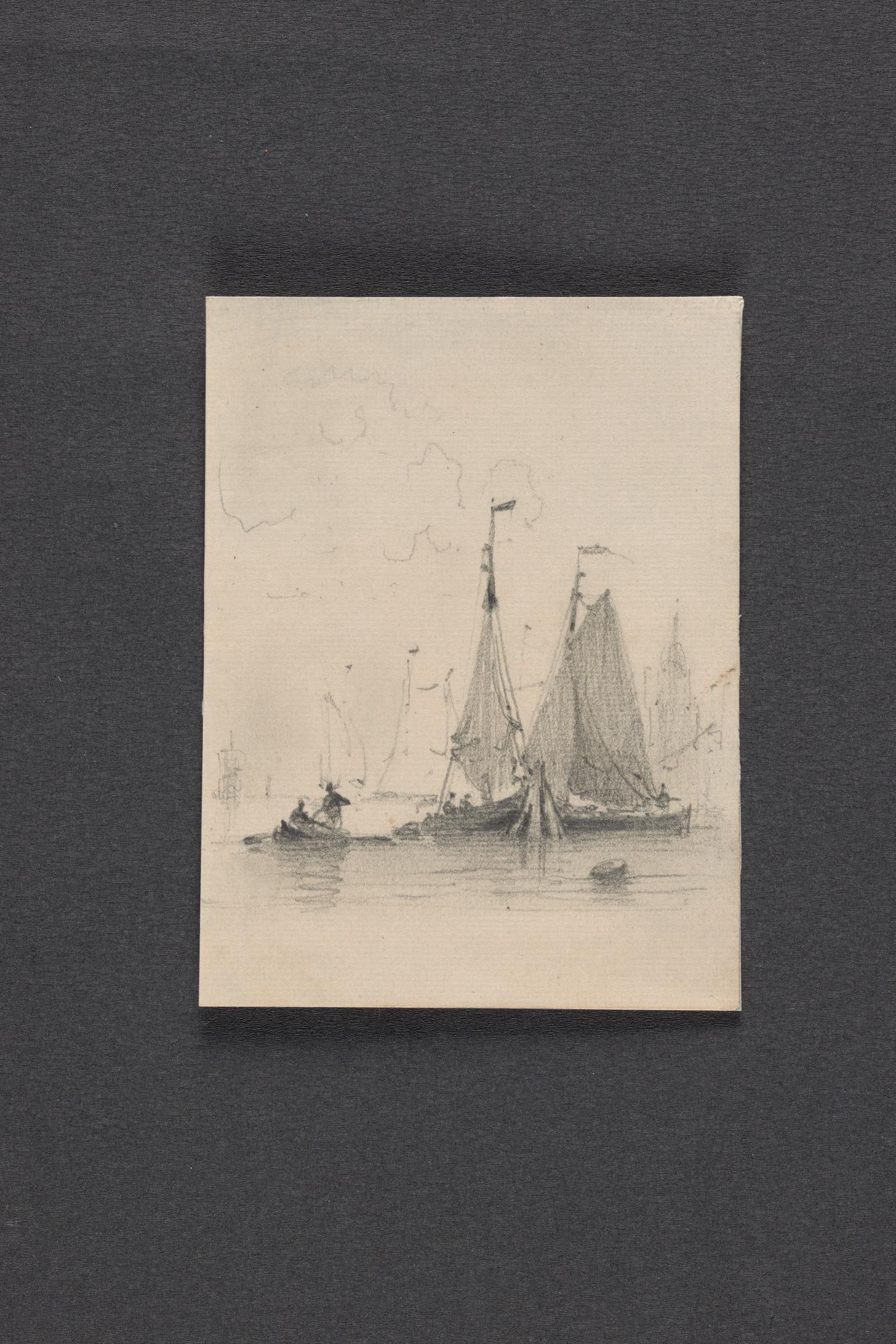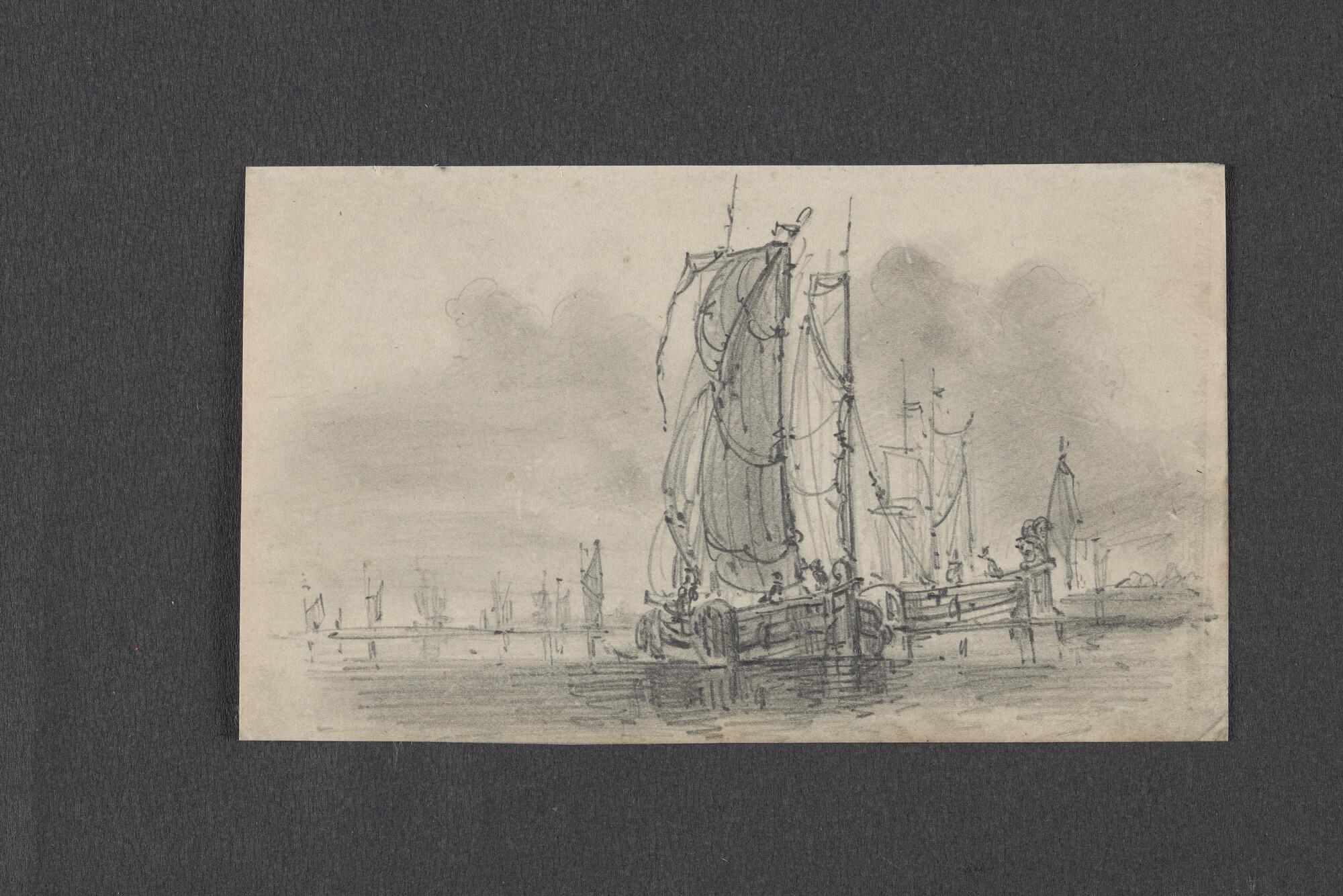 Studie van een kotter en een ander dwarsgetuigd schi...