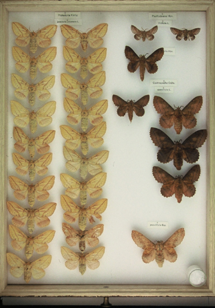 Vlinderdoos 054 van 106 dozen van hout en glas met d...