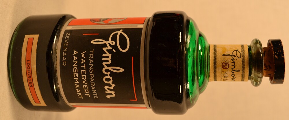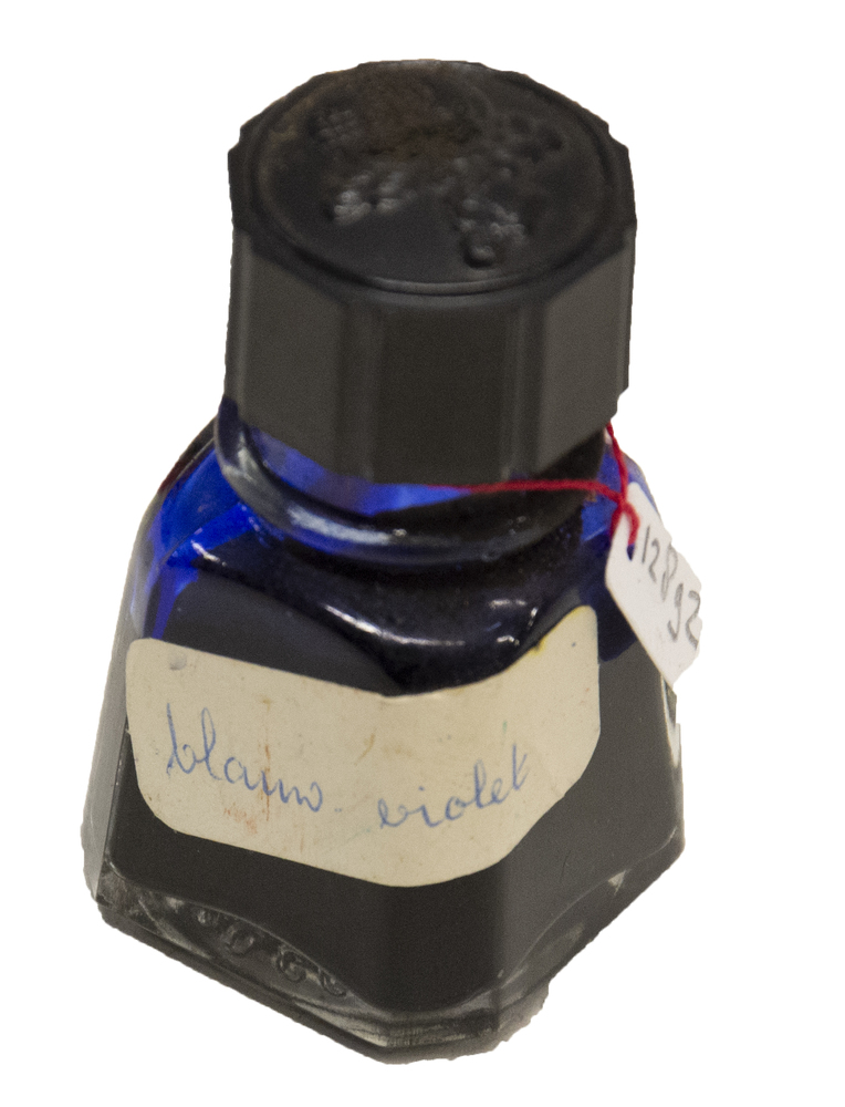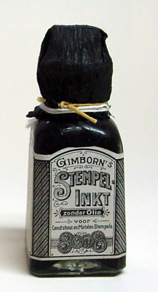 Inktfles van glas gevuld met stempelinkt door H. van...