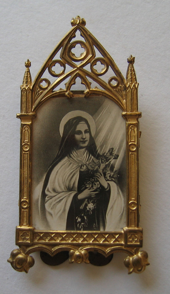 Lijstje van metaal met zwart-wit foto van de heilige...