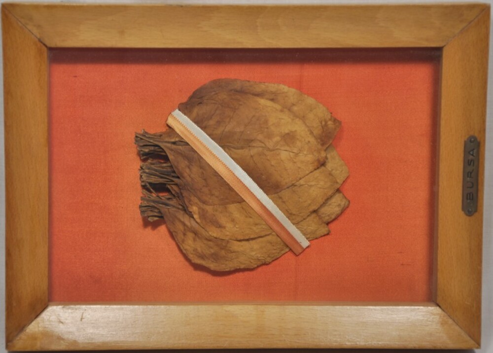 Vitrinekastje met een showmonster van Bursa tabak ca...