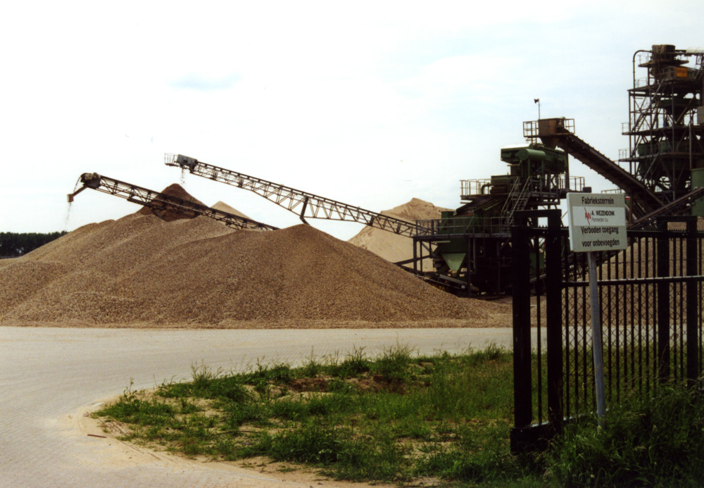 Kleurenfoto van zandtransport over de Spijksedijk te...