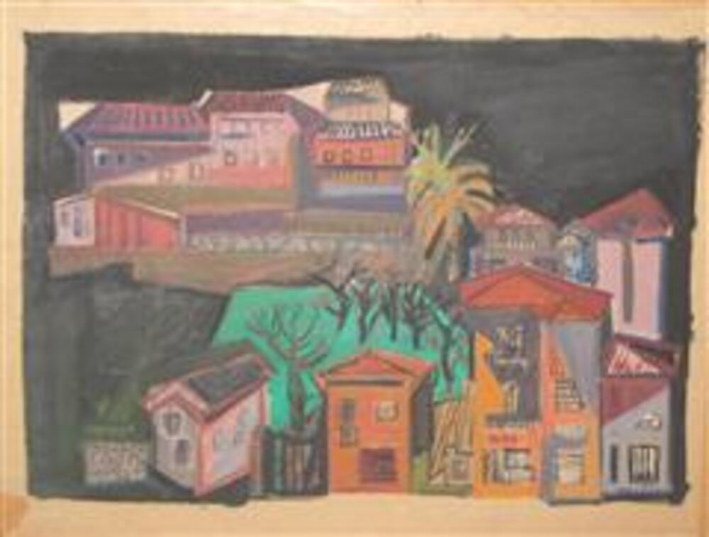Schilderij zonder titel papier geplakt op hardboard ...