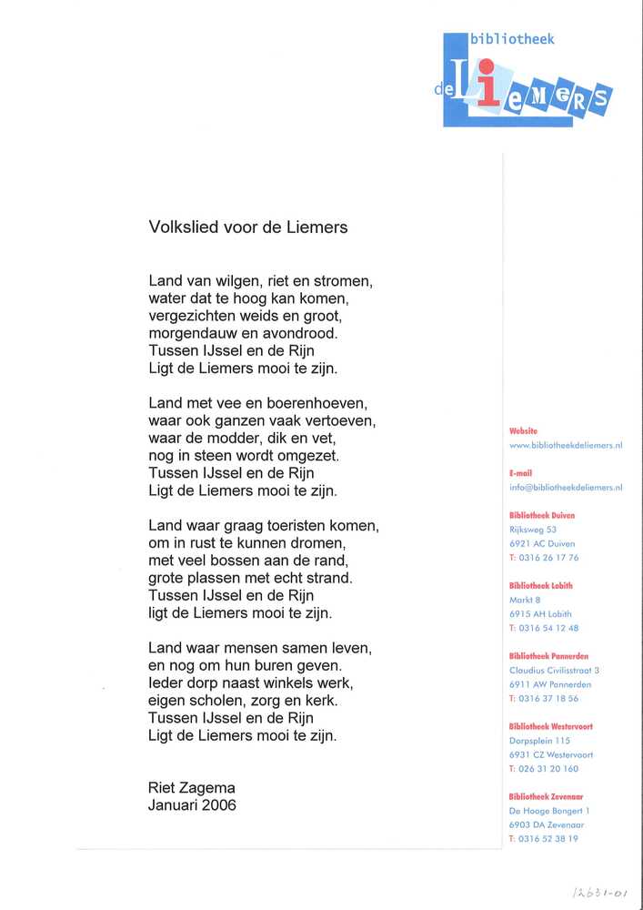 Tekst en muziek op papier van het Liemers Volkslied ...