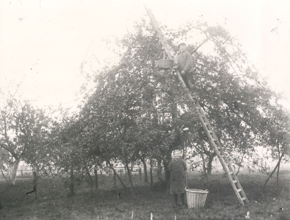 Zwart-wit foto van de boomgaard bij boerderij De Laa...