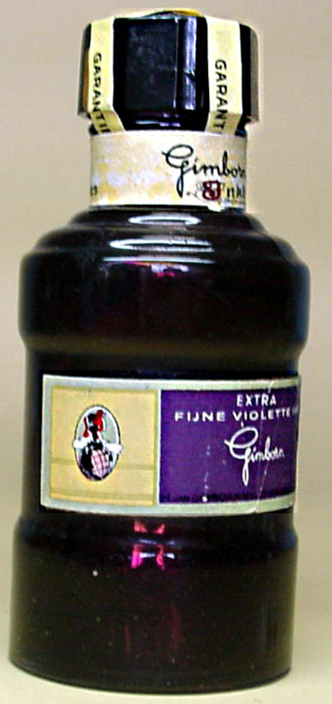 Fles van glas gevuld met extra fijne violette inkt v...