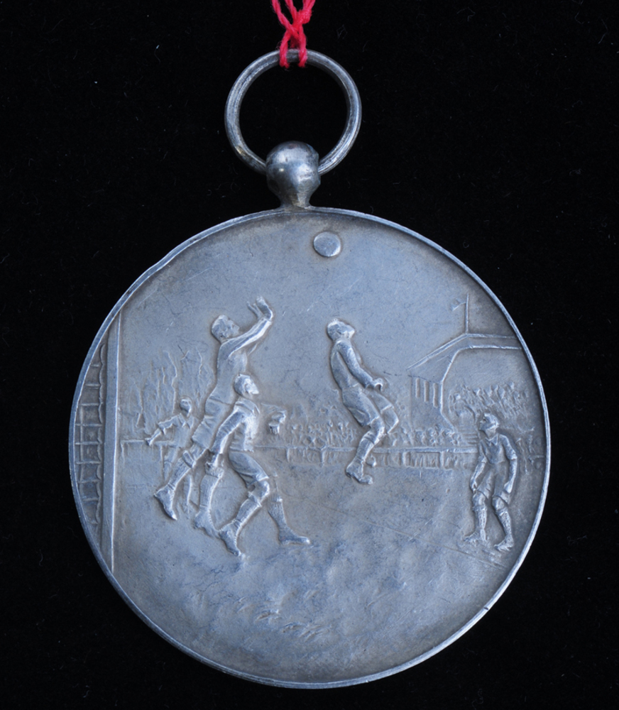 Medaille van metaal voorstellende een korfbalwedstri...