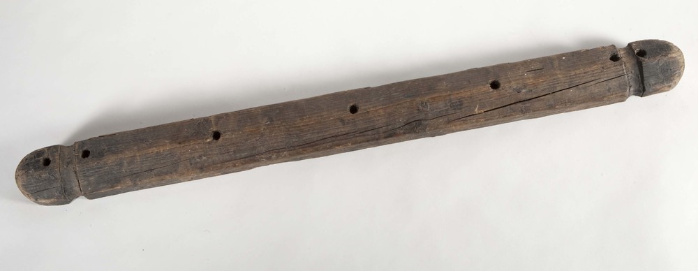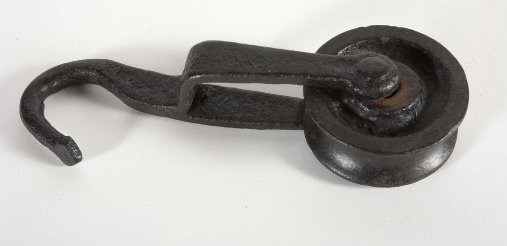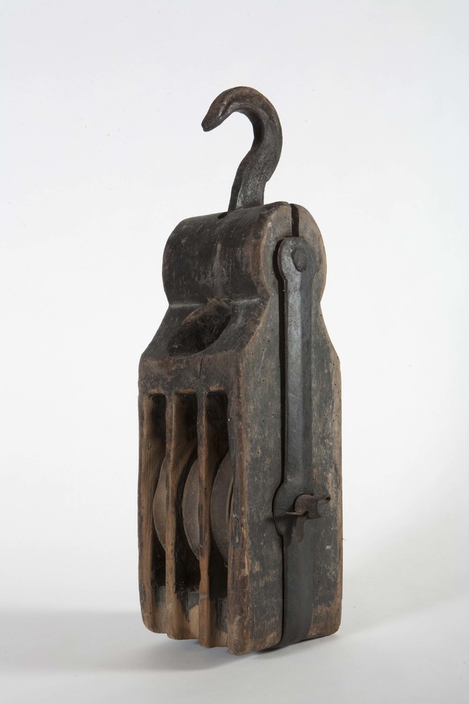 Hijsblok met katrollen, van hout en ijzer, voor het ...