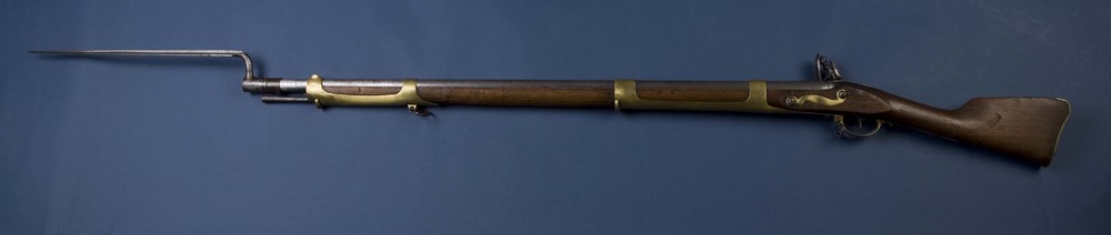 Geweer, zgn. vuursteenmusket, met bajonet, van hout,...