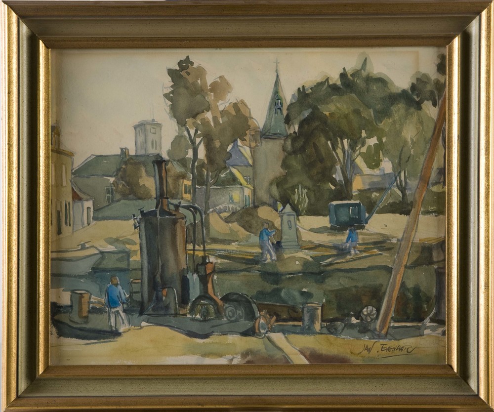 Aquarel, voorstellende een stadsgezicht, vervaardigd...