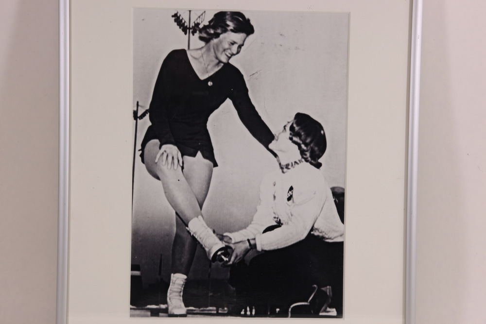 Zwart-witfoto van Sjoukje Dijkstra en Carol Heiss Je...