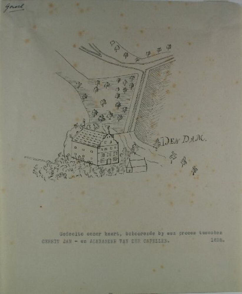 Het Kasteel de Rees, van terzijde gezien, circa 1750.