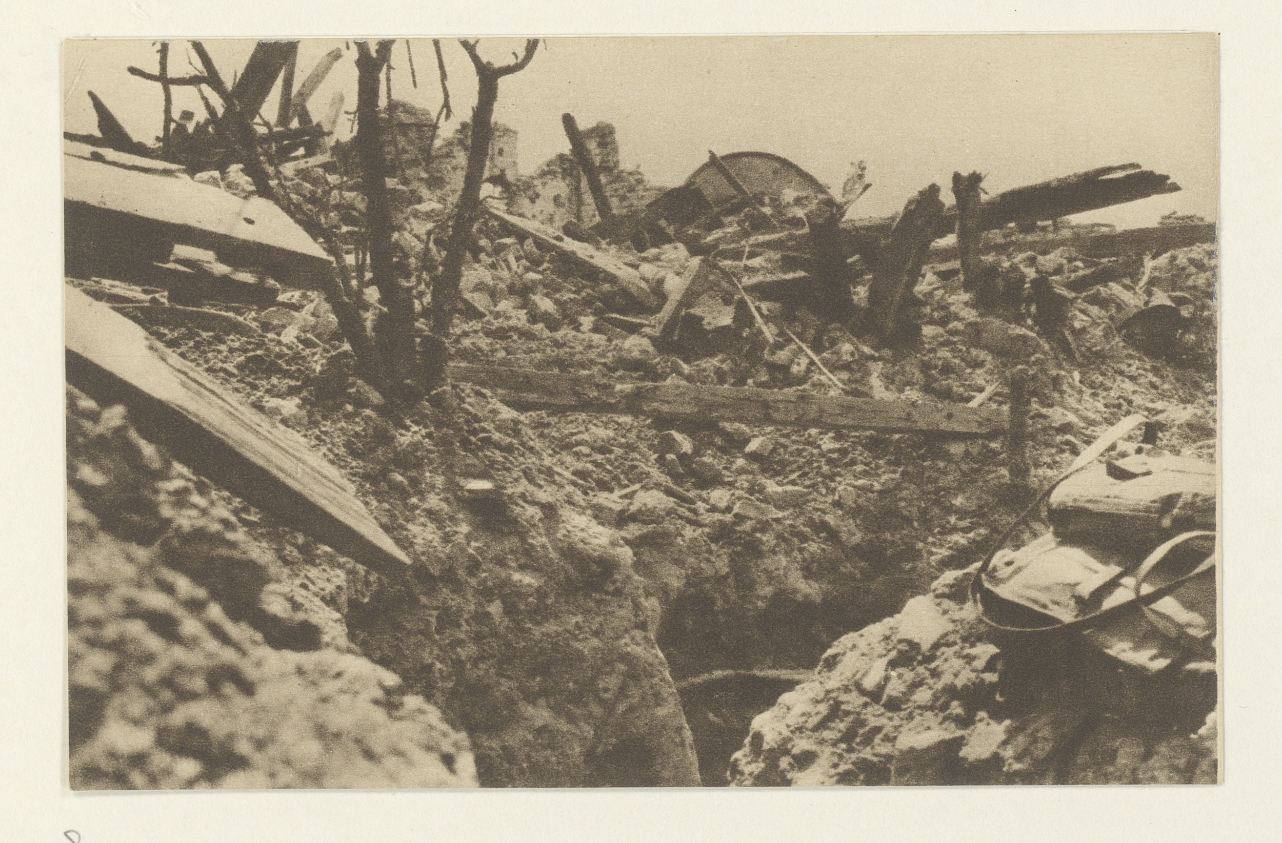 Eene Duitsche tweede linie loopgraaf tijdens den sla...