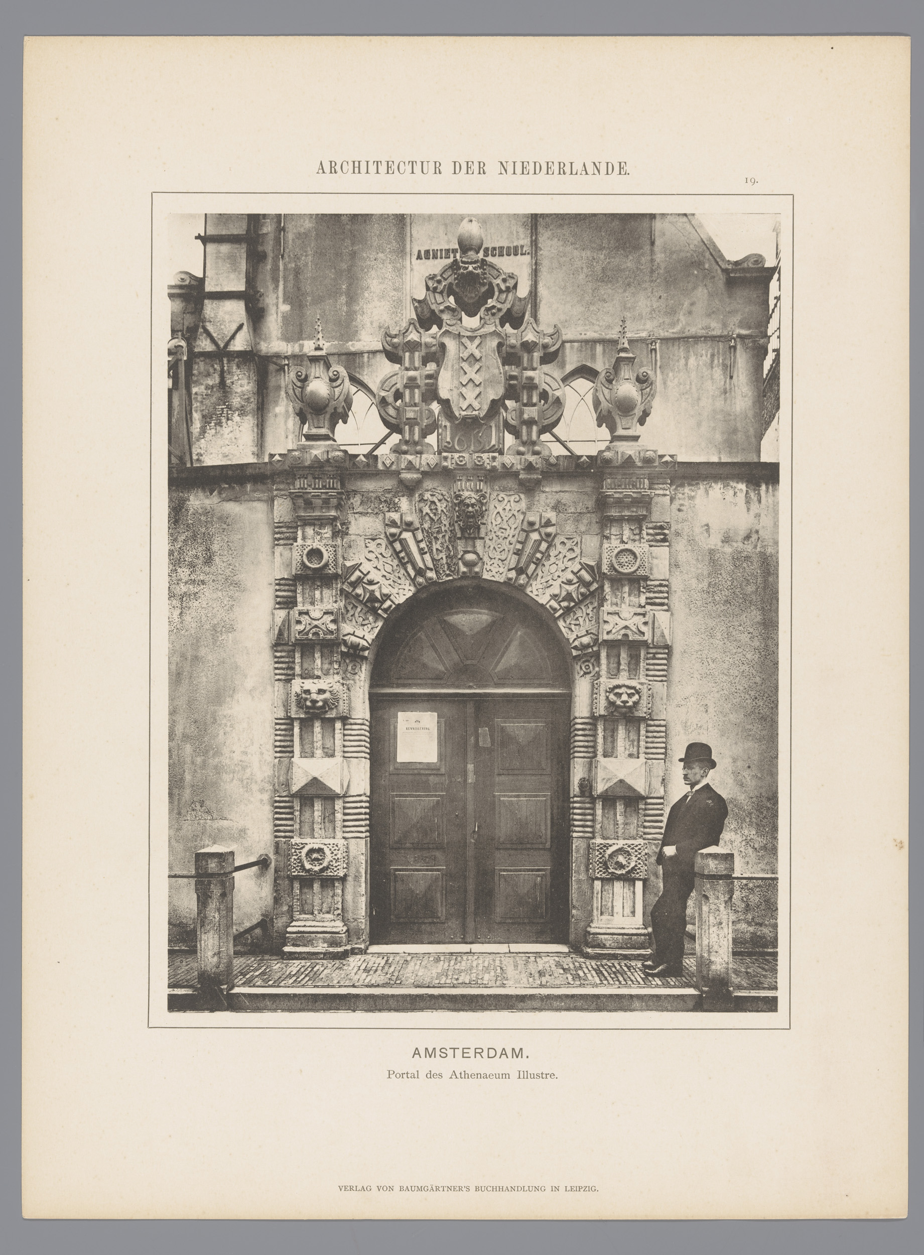 Gezicht op de deurpartij van het Athenaeum Illustre ...