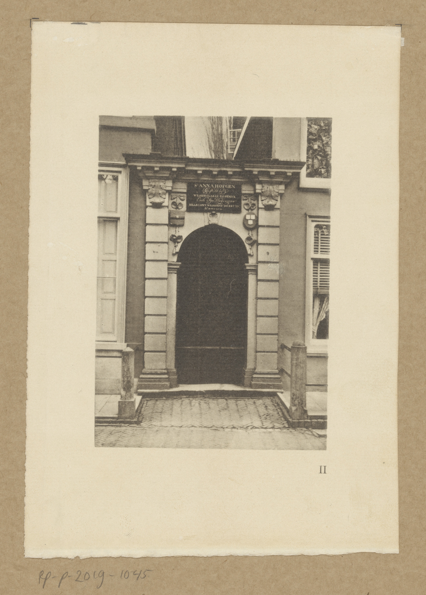 Gezicht op de poort van het Sint Annahofje te Leiden