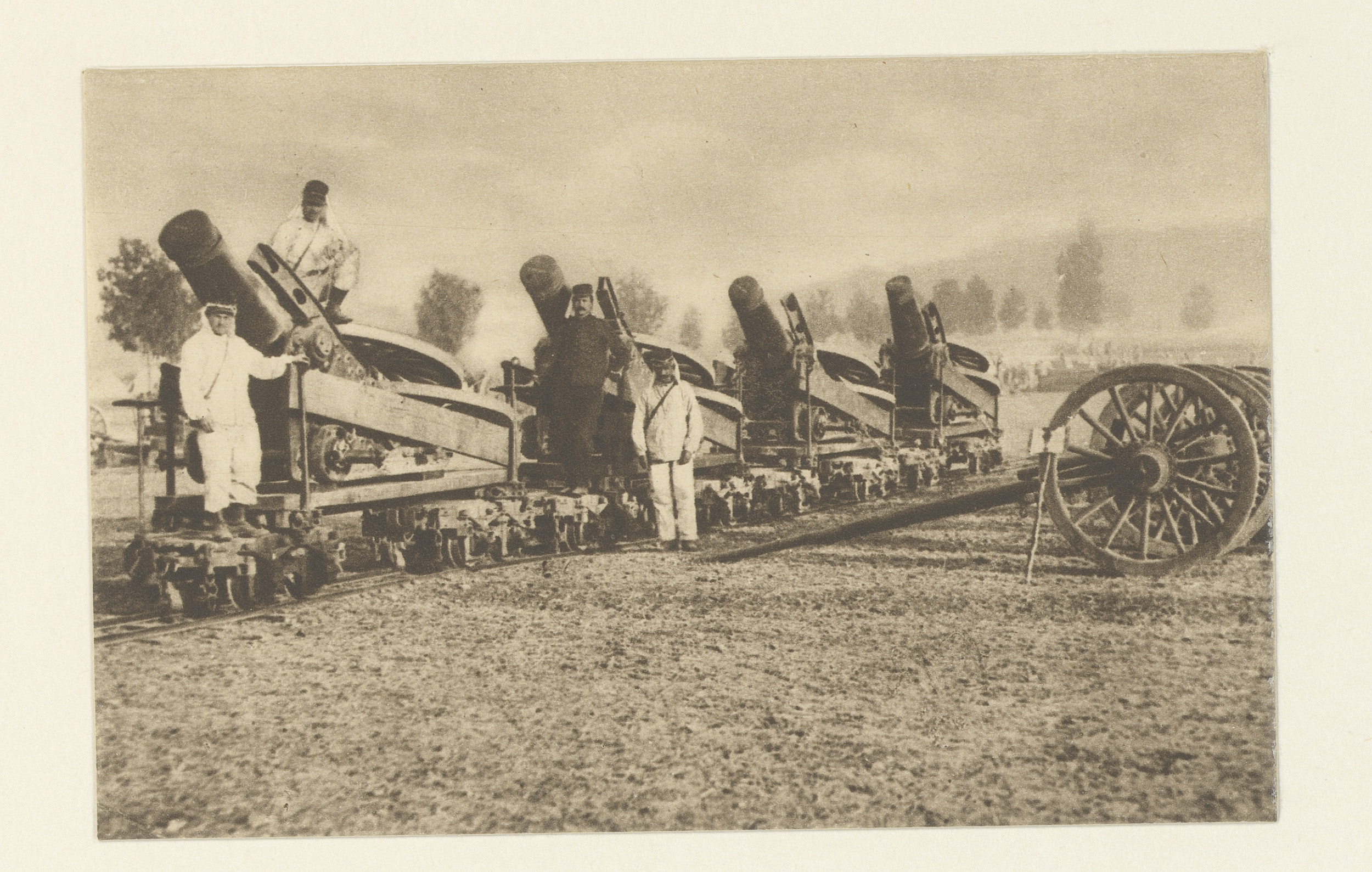 Eene batterij Duitsche "77" door de geduchte Fransch...