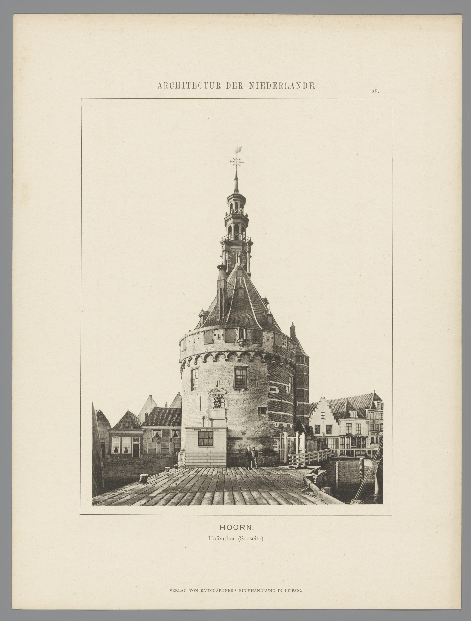 Gezicht op de Hoofdtoren in Hoorn vanaf de waterkant
