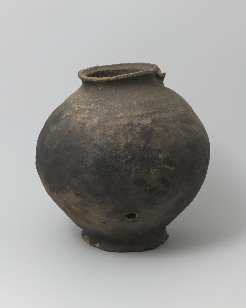 Bolle tuitpot van handgevormd aardewerk