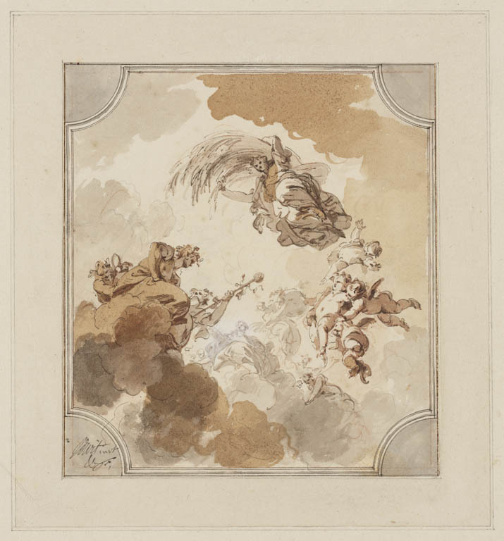 Vijf putti met bloemenkorf: de zomer?