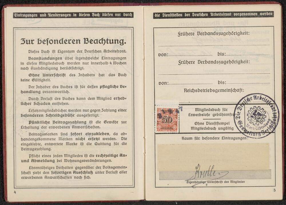"Mitgliedsbuch Deutscher Arbeitsfront", Leopold Krulle