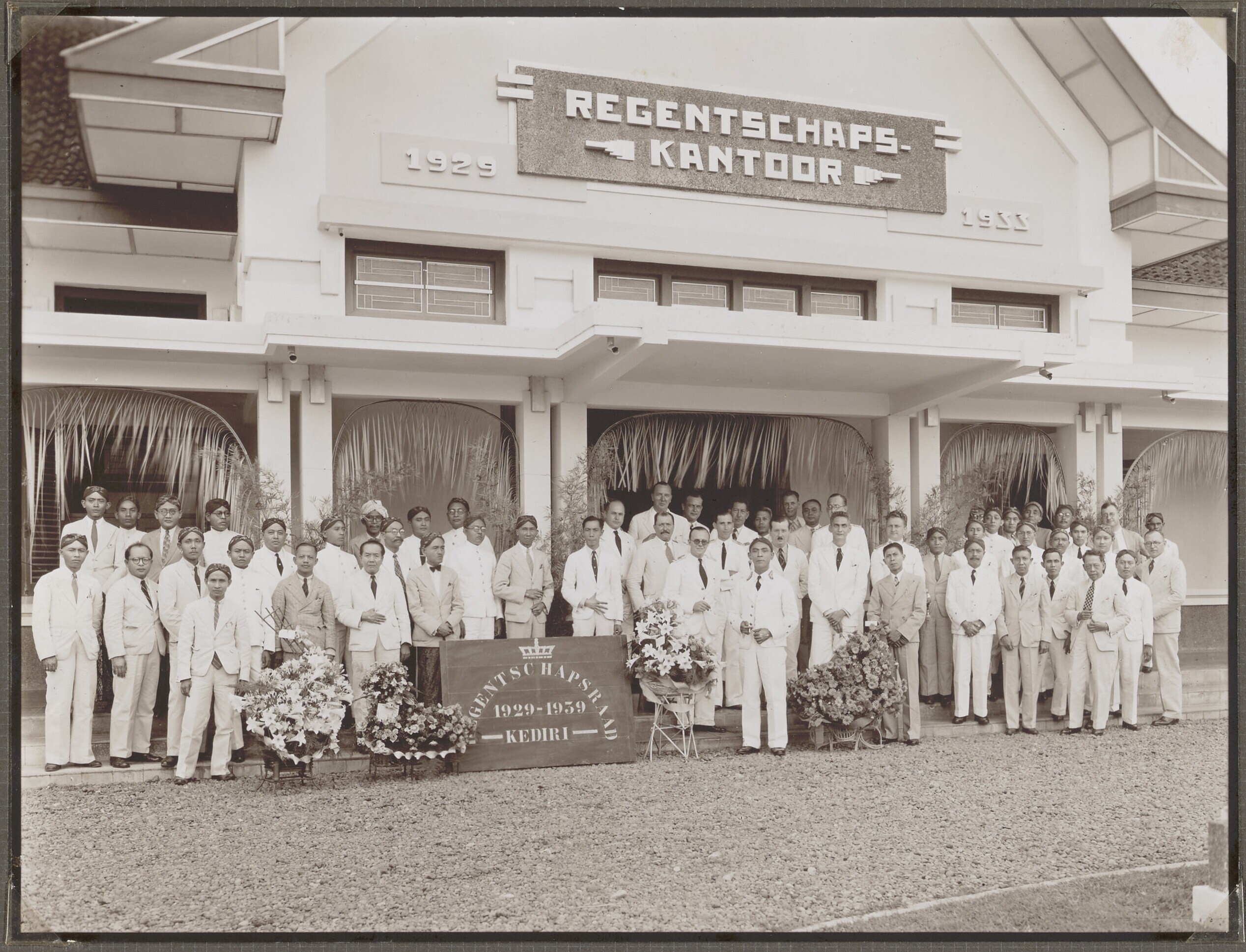 Groepsportret van leden van regentschapsraad van Ked...