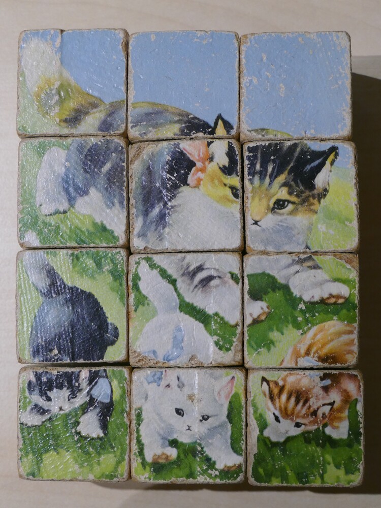 puzzel van blokken in kartonnen doos